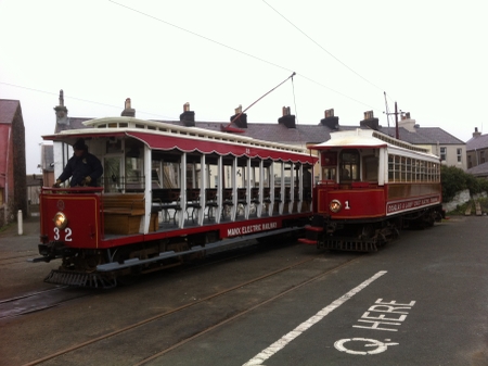 Car No.32 after arrival with the 10:40 Derby Castle-Ramsey, pictured alongside Car No.1. © Alex Fairlie