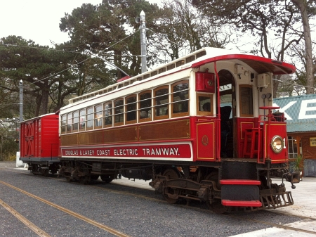 Car No.1 and Van No.4 wait to depart with a special for Derby Castle. © Alex Fairlie