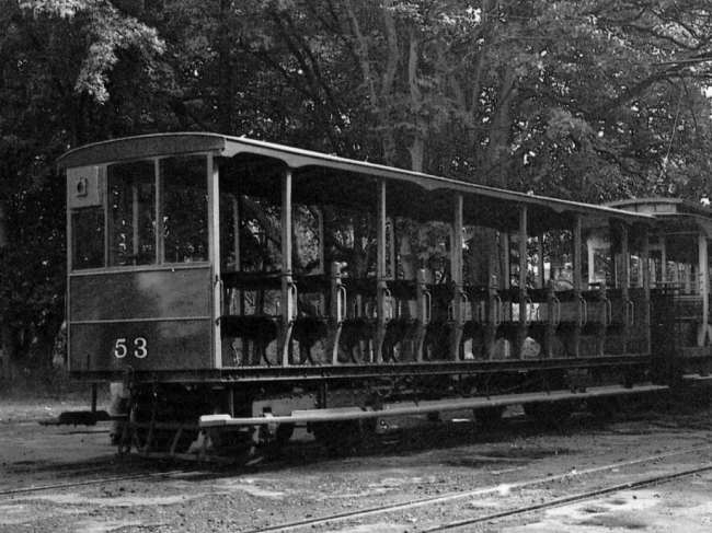 Trailer No.53 awaiting departure southbound at Laxey during the 1950s. © Travel Lens Photographic