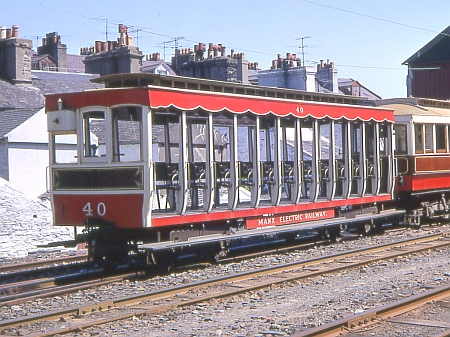 Trailer No.40 awaiting service outside Ramsey Car Shed with a ‘Tunnel Car’ during July 1968. © Henry Petermann
