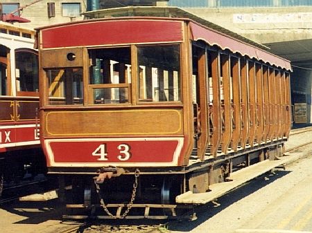 Trailer No.43 at Derby Castle in 1995 with varnished teak posts as opposed to the normal white paint. © Roger Marks