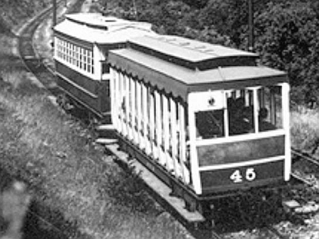 Trailer No.45 at Miller’s Crossing behind either Car No.1 or 2 in the Early 1950s. © Website Collection