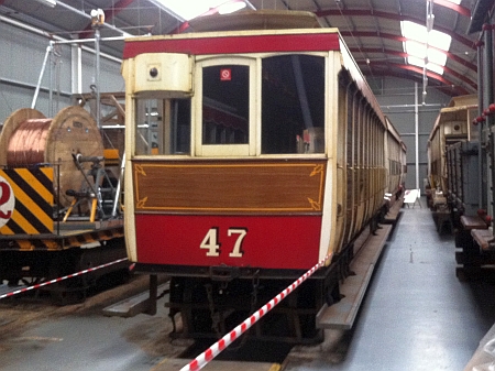 Trailer No.47 awaiting repaint inside Laxey Car Shed, November 2013. © Alex Fairlie