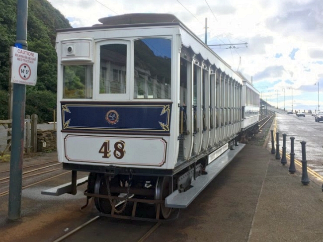 Trailer No.48 waits to be shunted back to the departure stop at Derby Castle by Car No.7 on the 27th of July 2016. © Josh Haworth