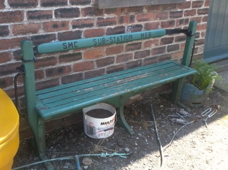 During Trailer No.50’s storage period at Laxey Car Shed for a currently unknown reason one of the seats nearest the Ramsey end was removed, pictured here in July 2011 painted green outside Laxey Substation, identifiable by the tumble-home to the lower edges. © Alex Fairlie