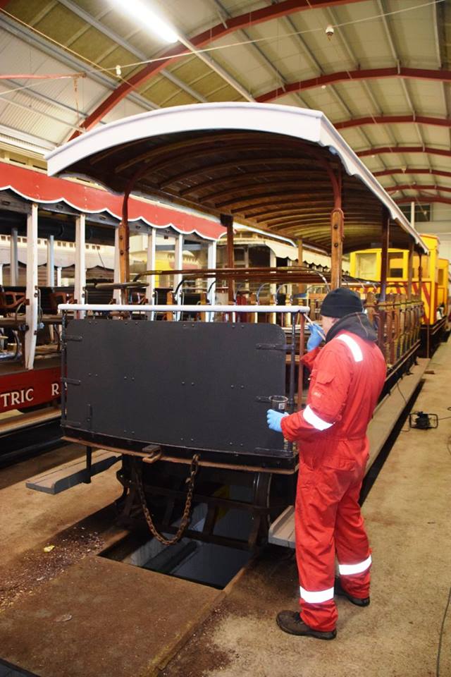 More work to trailer 51 over the last week. Most of the metal work now has had coat of primer and grey undercoat and the eaves board has had its first coat of gloss. © Andrew Scarffe