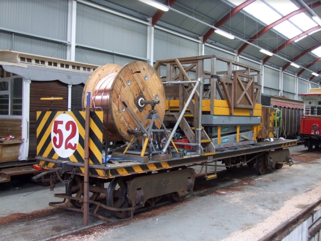 Trailer No.52 berthed inside Laxey Car Shed on the 31st of July 2015, viewable as part of the July 2015 Shed Tours. © David Hennessey
