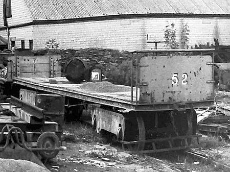 Trailer No.52 in September 1970 at the Blacksmiths Siding at Laxey, with Wagon No.7 shunted behind. © Peter Robinson