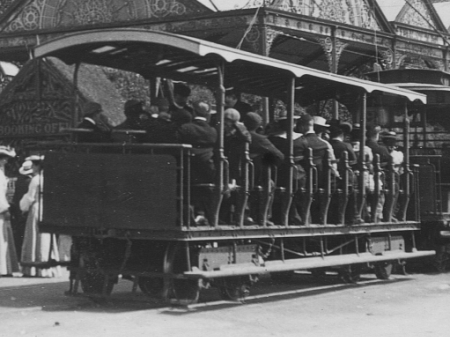 Trailer No.54 wearing it’s 1898-1903 number of No.33 behind a ‘Paddlebox’, waiting to form a northbound service. © Website Collection