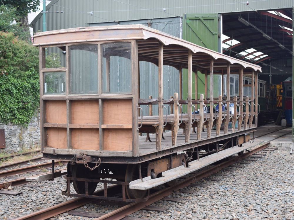 Trailer No.54 undergoing restoration outside the Car Shed at Laxey on the 21st of July. © Andrew Scarffe