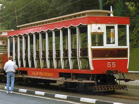 Trailer No.55 at Groudle in 1993 behind usual partner Car No.25, retaining it’s Isle of Man Railways lettering. © Steve Kemp
