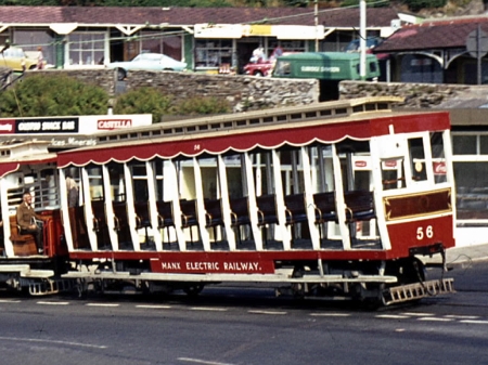 Trailer No.56 in original condition, descending to Derby Castle behind Car No.26, at Port Jack during 1975. © Richard Lomas