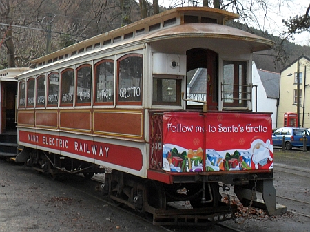 Trailer No.57 in ‘Santa Tram’ guise waiting to return to Derby Castle during December 2012. © David Martin