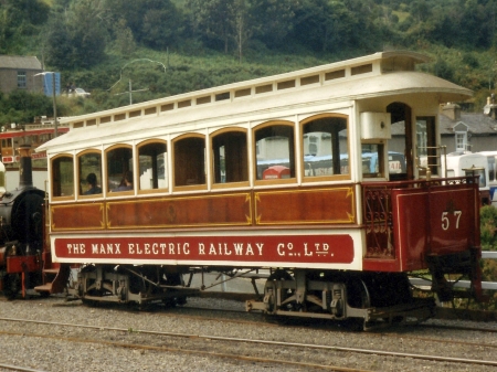 Trailer No.57 saw use with the ‘Steam on the Electric’ specials during 1993 and 1998, seen behind IoMR No.4 ‘Loch’ at Dumbell’s Row in September 1993. © ‘Walsall1955’