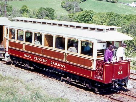 Trailer No.58 descending the gradient from Bulgham towards Dhoon Glen behind a Winter Saloon, during the 1970s. © Richard Pryke