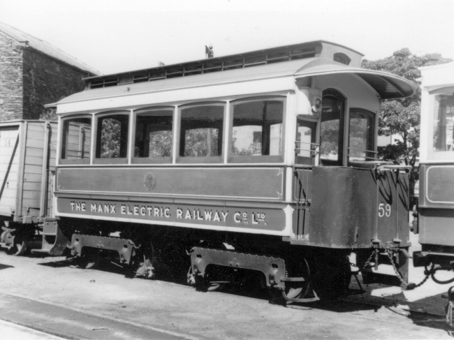 Trailer No.59 stands at Ramsey on the 1st of August 1957. On this day the trailer had journeyed up to the northern terminus behind Car No.6, working as a special. © Website Collection
