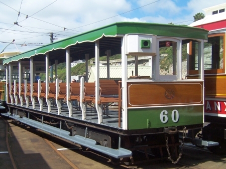 Trailer No.60 on display outside Derby Castle Top Shed during July 2011, alongside Trailer No.59 and Car No.16. © Alex Fairlie