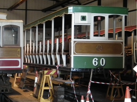 Trailer No.60 in the Derby Castle Bottom Shed during 2012, awaiting return of it’s overhauled trucks. © Steve Kemp