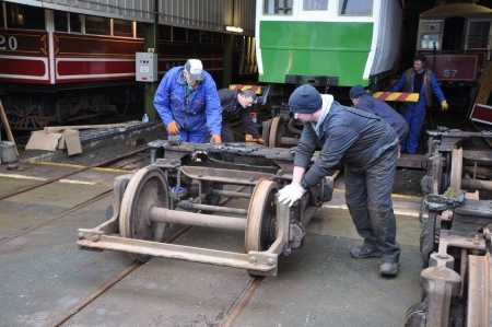 The trucks are rolled out from underneath Trailer No.62 on the 17th of January. © Andrew Scarffe
