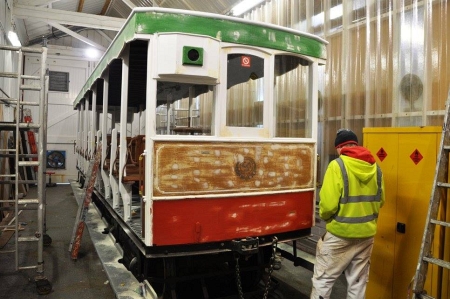Trailer No.60 is stripped to allow the commencement of its repaint into Red and White on the 17th of January. © Andrew Scarffe