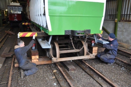 Preparations are made to lift Trailer No.62 from its trucks on the 17th of January. © Andrew Scarffe