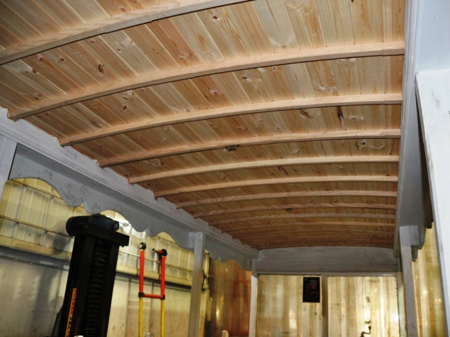 The renewed woodwork in the interior roof of Tram No.36. © Andrew Scarffe
