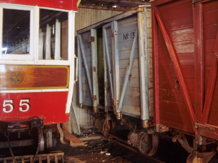 Van No.13 was placed in storage at Derby Castle Car Sheds during the 1990s, seen here at the rear of the Top Car Sheds in August 1991. © http://www.mer.im