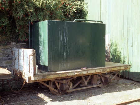 Wagon No.1 carrying a water tank outside Laxey Car Shed in August 1993. © http://www.mer.im
