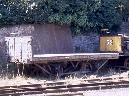 Wagon No.1 in June 1995 outside Laxey Car Shed, with the temporary sleeper sides removed. © Barney Staples