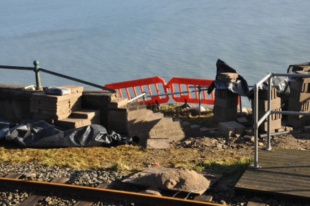 At Bulgham, work has commenced on repairing the top of the 1983 wall and refixing of loose capping elsewhere. The metal railings are to be refurbished, repaired and repainted. It must be emphasised that there are no issues with the wall itself. © Andrew Scarffe
