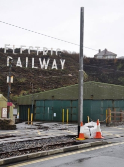 Another traction pole being replaced is 9A at the entrance to Derby Castle Yard. As much of the tension of the overhead wiring in the yard is supported by this pole, it is of necessity of a more substantial section. © Andrew Scarffe