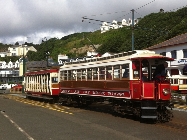 The unusual combination of Car No.1 and Trailer No.41 was used on one of the special diagrams as part of the 2013 Manx Heritage Transport Festival, departing for Laxey from Derby Castle on July 26th. © Alex Fairlie