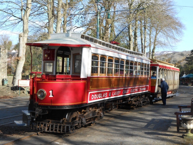 Car No.1 and Trailer No.47 wait to depart Laxey with the 09:55 to Derby Castle on the 6th of April 2013. © Andrew Scarffe