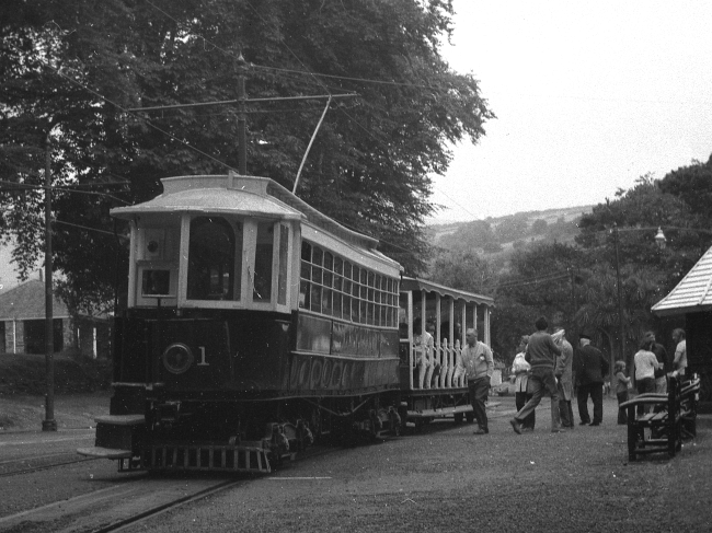 Car No.1 and Trailer No.51 pick up and set down passengers at Laxey on their way to Derby Castle. On this day the pair worked a single round trip to Ramsey as a special. © Colin Clifton