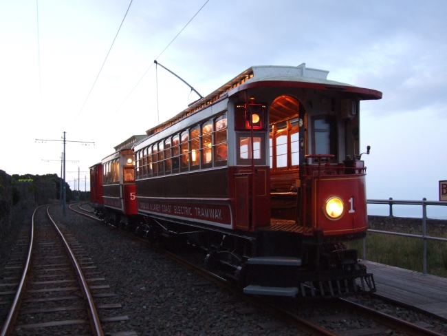 Car No.1, Trailer No.59 and Van No.4 stand at Bulgham for a photo-stop, whilst on private hire to the Laxey and Lonan Heritage Trust for a special return trip to Ramsey on the 27th of July 2012. © Alex Fairlie
