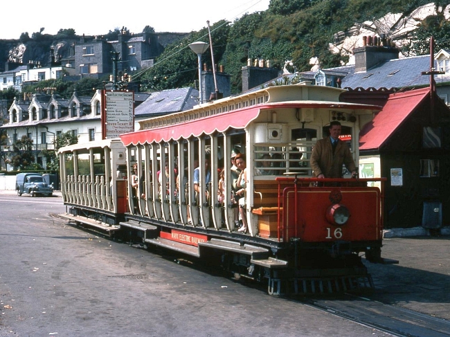 Car No.16 and Trailer No.50 wait to depart Derby Castle with a northbound special on the 25th of July 1969. Car No.16 was commonly paired with lightweight trailers around this period. © Lindsay Bridge