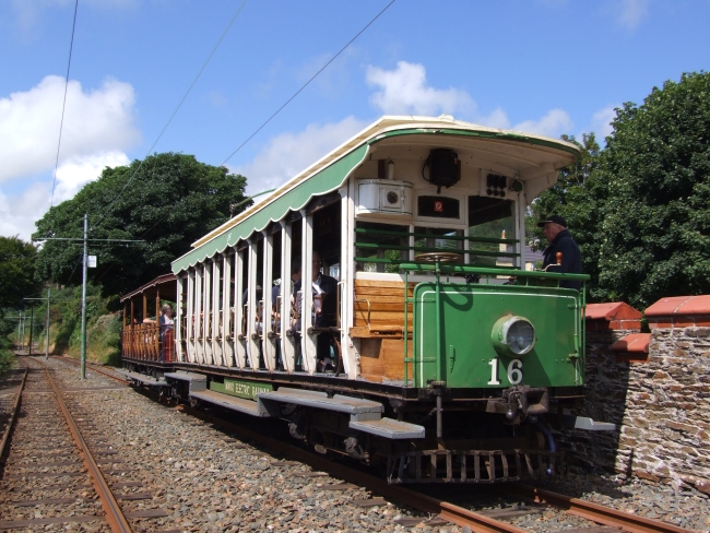A temporary power outage has stranded Car No.16 and Trailer No.51 at Minorca on the 24th of July 2013. On this day the car was operating the Ramsey starting diagram, this working the 11:40 Derby Castle to Ramsey. © Alex Fairlie