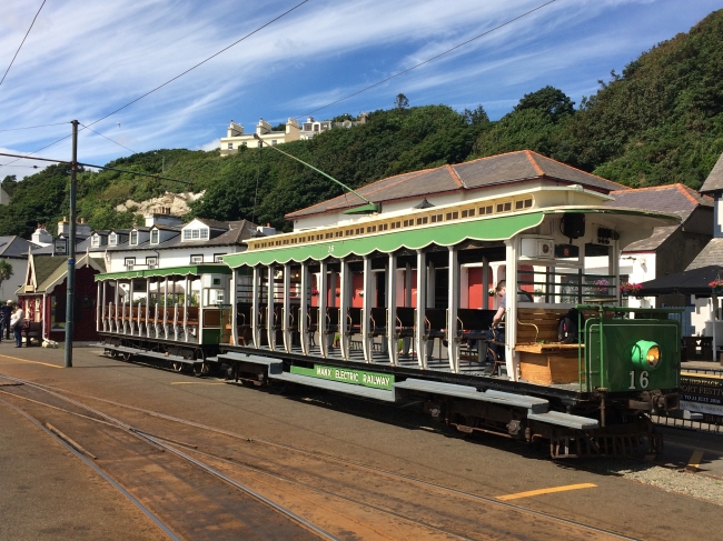 Car No.16 and Trailer No.60 wait in the Groudle Siding while the crew has their lunch break on the 31st of July 2016. © Alex Fairlie
