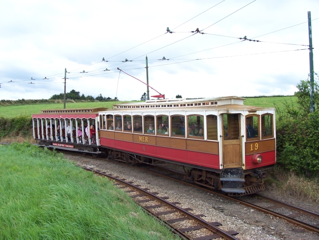 Car No.19 and Trailer No.46 have just passed over the A2 Road Crossing with the 10:10 Derby Castle to Ramsey on the 12th of August 2006. © David Martin