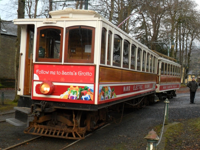 Car No.19 in ‘Santa Tram’ guise with Trailer No.57 waiting to depart from Laxey on the 15th of December 2012. © David Martin