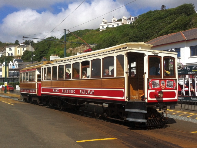 Car No.19 and Trailer No.59 depart north with the 11:00 to Laxey on the 26th of July 2013, an additional timetabled service ran as part of one of the intensive service days at that years Manx Heritage Transport Festival. © Alex Fairlie