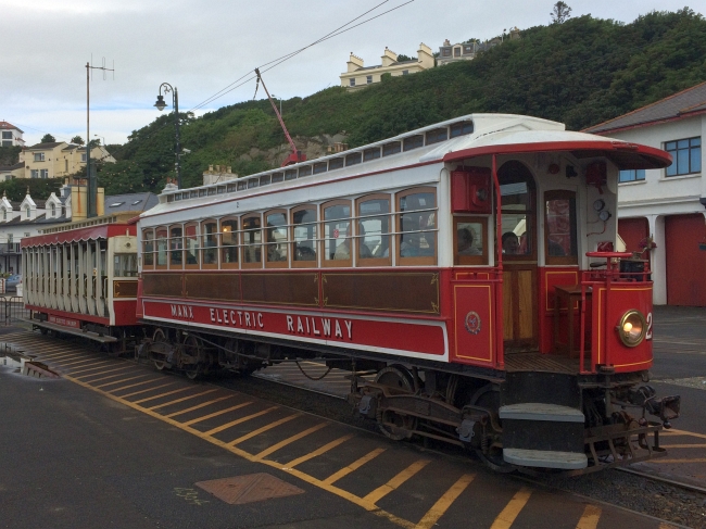 Car No.2 and Trailer No.44 wait to depart Derby Castle with the 09:10 to Laxey on the 29th of July 2016. © Alex Fairlie