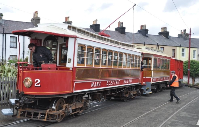 Car No.2 with Trailer No.59 at Ramsey on the 7th of September 2013. The pair were in use as part of the ‘120th Anniversary Day’ celebrations held on this day – Van 4 to the rear was not coupled to the pair. © Andrew Scarffe