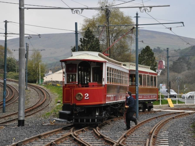 Car No.2 and Trailer No.59 show the shunting arrangements for Laxey terminating services on the first day of their official operation, the 20th of April 2014. © Andrew Scarffe