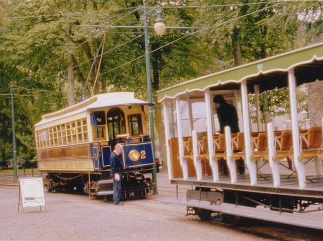 Trailer No.60 is gravity shunted onto Car No.2 at Laxey on the 8th of August 2002 – the pair were working Derby Castle to Laxey specials as part of the Enthusiast Week. © Travel Lens Photographic
