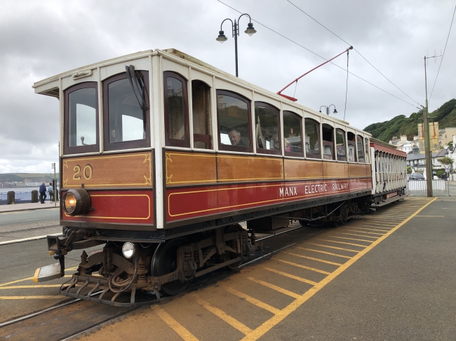 Car No.20 and Trailer No.46 await departure to the north at Derby Castle with the 10:10 to Ramsey on the 31st of July 2021. © Alex Fairlie