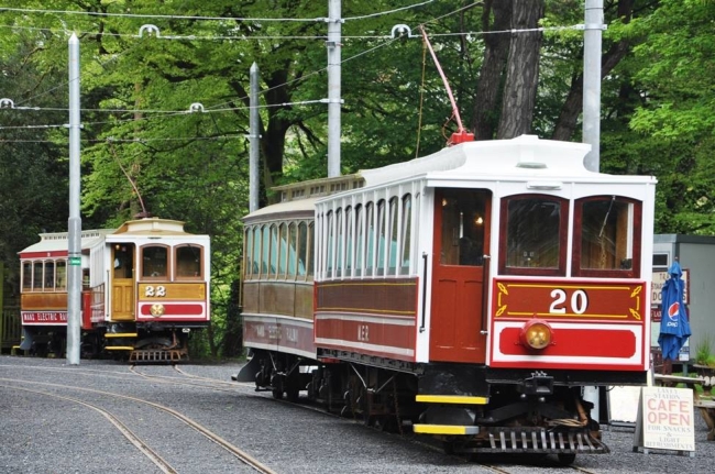 Car No.20 and Trailer No.58 in Laxey Station with Car No.22 and Trailer No.59 in the siding behind on the 10th of May 2014. This was Car No.20s first day in traffic following its winter overhaul and repaint. © Andrew Scarffe