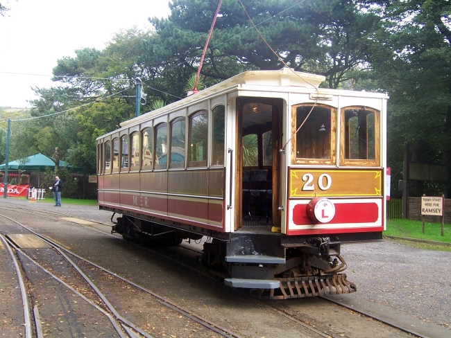 Car No.20 stands in Laxey Station with a Ultimate Driving Experience working on the 21st of September 2010. Note the L plates covering the headlamps! © David Martin