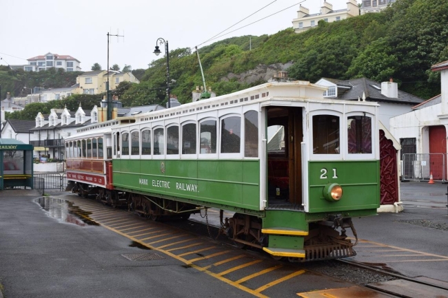 Car No.21 and Trailer No.58 stand at the departure stop at Derby Castle waiting to depart for Ramsey on the 10th of June 2017. © Andrew Scarffe