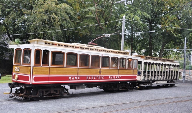 Car No.22 and Trailer No.48 at Laxey Station on the 30th of August 2014, whilst working the Laxey based set diagram. © Andrew Scarffe